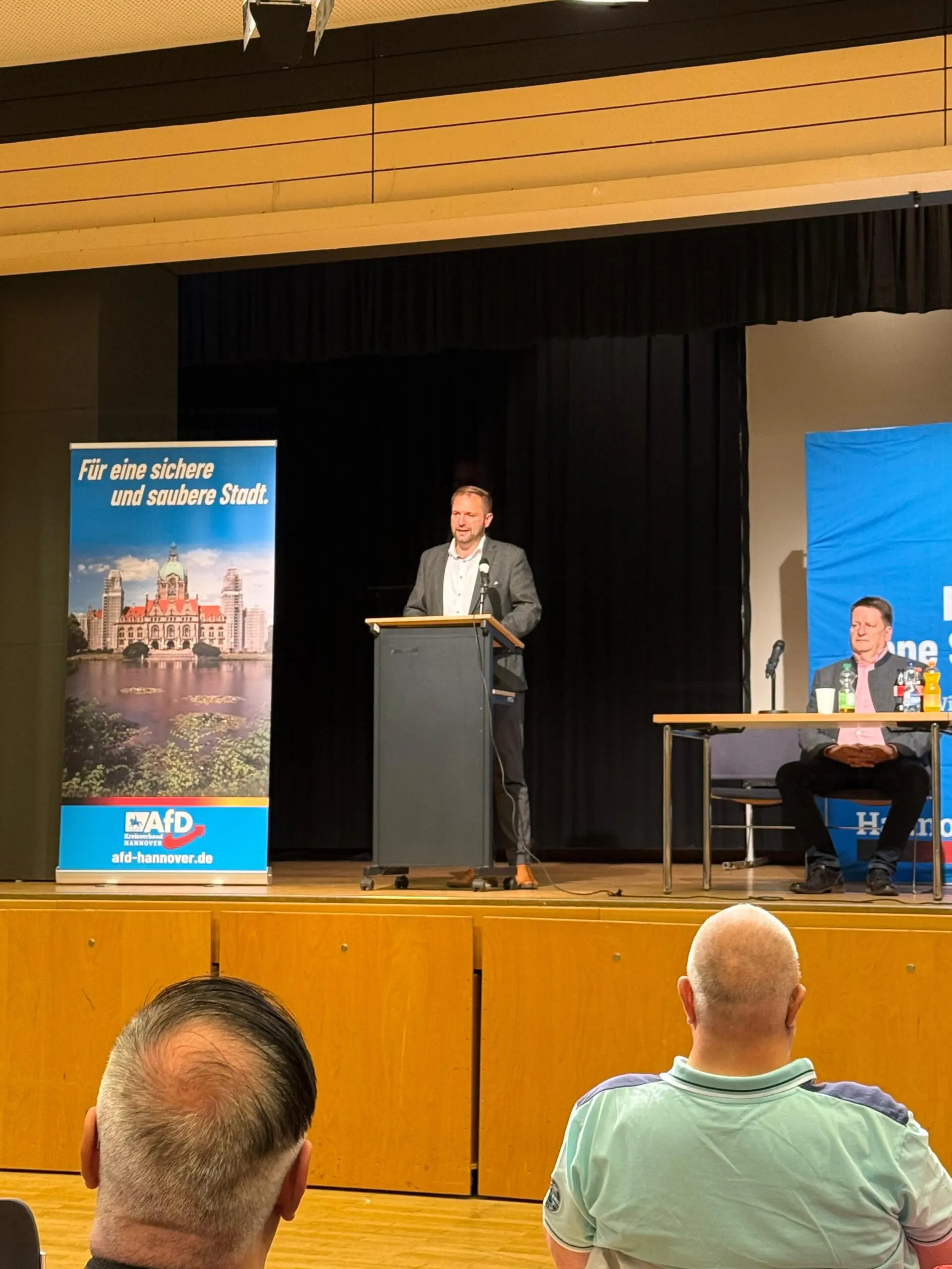 Am 25. September 2025 lud die AfD Hannover zum Stammtisch in das Misburger Bürgerhaus. Rund 120 Gäste waren der Einladung gefolgt, um mit den Abgeordneten der niedersächsischen AfD-Landtagsfraktion ins Gespräch zu kommen.